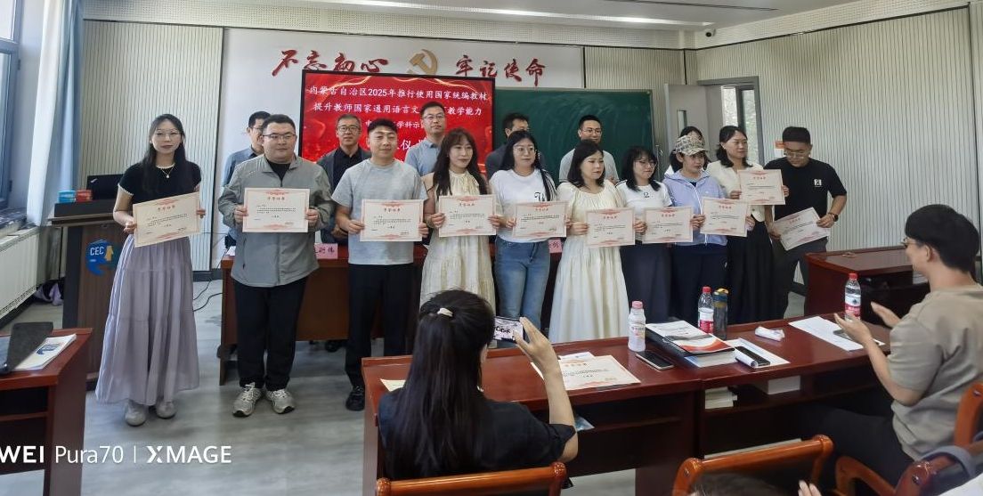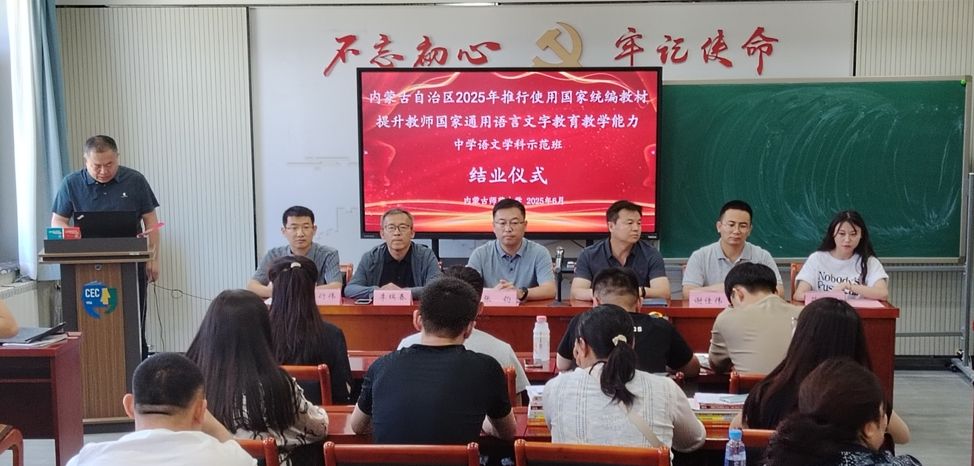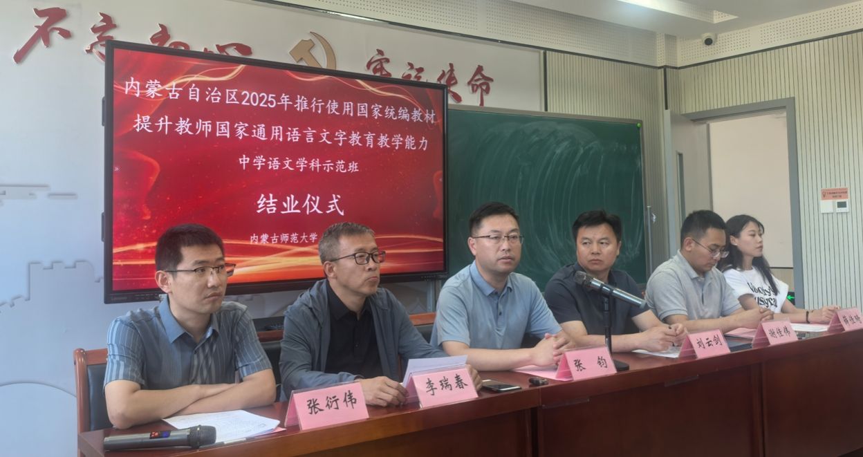 2025年6月20日,yl8cc永利官网与继续教育学院、国家语言文字推广基地(yl8cc永利官网)共同承担的内蒙古自治区2025年推行使用国家统编教材提升教师国家通用语言文字教育教学能力中学语文学科示范班培训工作圆满完成,参训的43位学员全部顺利结业,当日举办了隆重的示范班结业仪式。yl8cc永利官网副院长张钧、汉语言文学系主任李瑞春、青年教师谢佳伟博士出席示范班结业仪式。