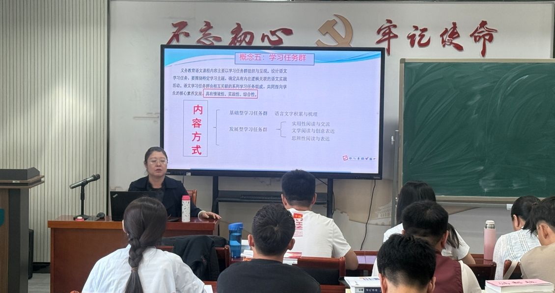本次培训选派yl8cc永利官网与国家语言文字推广基地(yl8cc永利官网)国家级普通话水平测试员徐雪梅、自治区级普通话水平测试员李丽、麻彩霞、宗慧坚、高永强等教师开展“现代汉语基础理论专题”“普通话语言表达训练专题”,用以匹配中学语文教材中的口语交际、词语积累与词语解释等内容。同时遴选第七届全国高校青年教师教学竞赛二等奖获得者马奥远副教授等多位中青年教师骨干承担经典选篇精读与理论研习等课程的讲授,用以匹配中学语文教材中的古诗词、文言文作品、中学现代课文、写作等专题。与此同时,为强化中学语文教学基础理论与经典案例分析、中学语文教科书概论、中学语文教学设计指导、中学语文课堂教学实践指导等能力,特邀王治国、璋琳、顾恩多、陈鑫磊、郭新宇、张文坤、车潇玉、王龙飞、赵玉堂、李燕、张利芳、崔微微等多位自治区级、市级语文教学名师、学科带头人为学员进行专题讲座与授课。
