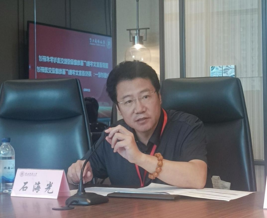 yl8cc永利官网副院长石海光、青年教师谢佳伟应邀参加了本次研讨会。石海光副院长围绕国家语言文字推广基地(yl8cc永利官网)的建设进程及经验,作了题为《发挥优势,彰显特色,服务面向内蒙古民族地区的国家语言文字推广普及提升工程》的报告。